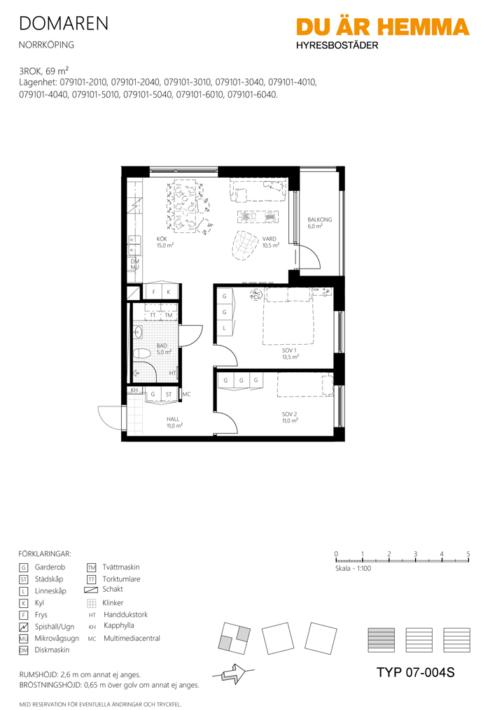Välplanerad, moderna trea om 69 m2 på våning 4 med inglasad balkong. Du får här en trevlig social yta med kök och vardagsrum tillsammans. Välutrustat kök med kyl, frys, diskmaskin, spishäll, inbyggnadsugn och mikrovågsugn. Badrum med kaklade väggar, klinkergolv, handfat i kommod, duschhörn med vikbar vägg, handduksvärmare, tvättmaskin och torktumlare. Två sovrum med garderober. Ekparkettgolv i hela bostaden och del av hall har klinkergolv.