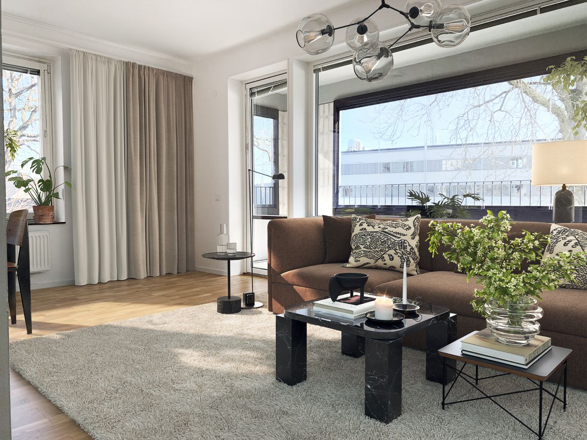 Observera att interiörbilderna är tagna i olika lägenhetstyper inom fastigheten och att verkligheten därför kan skilja sig från bilderna.